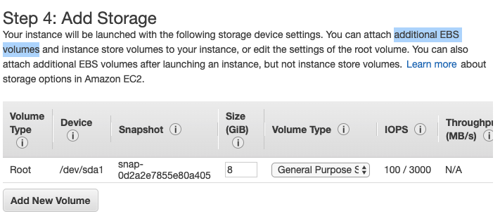 EBS Volumes을 추가할 수 있다는 설명도 이제 보이실 것 같습니다.