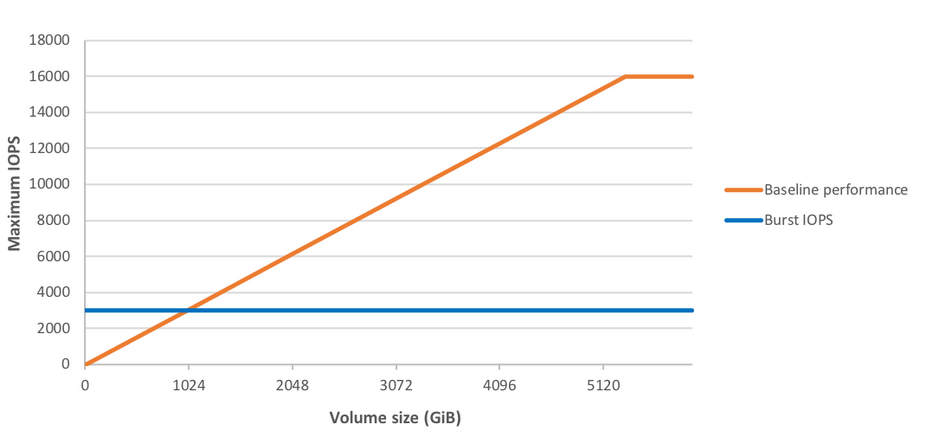 아래는 공식문서의 IOPS그래프인데요. 용량이 커질수록 Maximum IOPS가 커집니다.