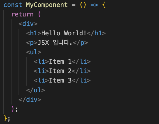 JSX에서는 괄호 () 안에 HTML 태그를 넣어 UI를 만들어야 합니다.