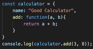 add함수를 caculator 객체(object)에 넣어서 사용할 수 있습니다.