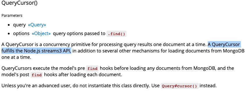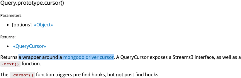 - maxTimeMS: query하는데 걸리는 max시간을 설정 - requires mongodb >= 2.6.0