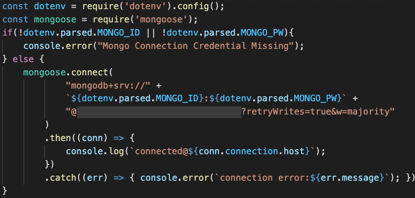 MongoDB는 다행히도 Promise를 지원하므로, 아래와 같이, 연결시와 error시의 코드를 작성해 줄 수 있습니다.