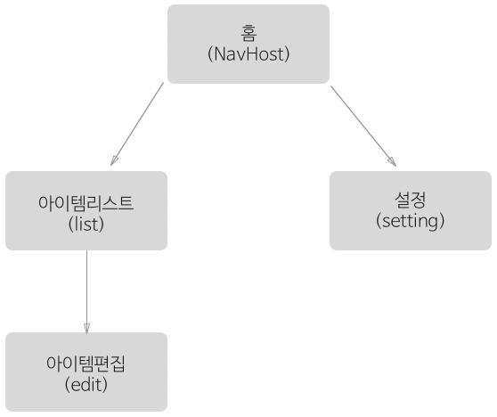 오늘 글의 목표는 아래와 같은 간단한 구조를 Nested Navigation으로 구현하는 것입니다.