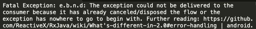 이것은 RxJava2로 업그레이드 하면서, 달라진 ErrorHandler를 적용하지 않아서 발생한 문제인데요.