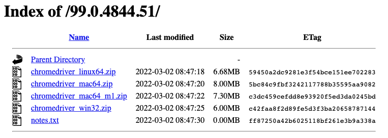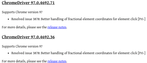 이제 chromedriver 사이트 다운로드사이트(https://chromedriver.chromium.org/downloads)에 들어가서,