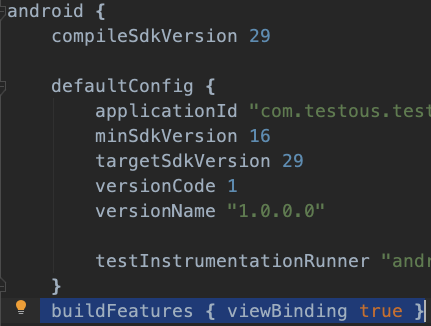 buildFeatures { viewBinding true }