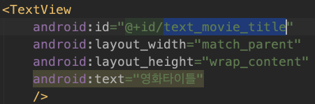 mBinding에서는 아래와 같이, "mBinding.textMovietitle"로 접근하게 됩니다.