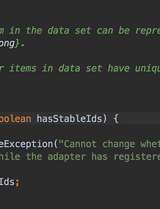 반응형 RecyclerView6 RecyclerView에서 고차함수 이용한 리스트아이템클릭 구현 인자로 함수를 받는 함수를 고차함수라고 하는데요. 영어로 HigherOrder Function이라고 하지요. 오늘은 이것을 이용해서 리스트의 아이템OnItemClickListener를 어떻게 이용하는지 정리해 보도록 하겠습니다. 먼저 기본적인 recyclerView를 설정하도록 하겠습니다. 참고로 여기서는 viewBinding을 사용하였습니다. viewBiding은 findviewById를 대체할 수 있는 방법인데요. 이와 관련해서는 다른 글에서 정리하도록 하겠습니다. 1. RecyclerView를 위한 기본적인 셋업 먼저 가장 기본적인 Recycler View를 세팅하도록 하겠습니다. 1-1. DataModel설정 먼저 Movie라고 하는 간단한 데이터클래스를 정의하겠습니다. 1-2. recyclerV.. 2021. 4. 2. ArrayIndexOutOfBoundsException과 ViewHolder의 getAdapterPosition사용 RecyclerView를 이용해서, list상의 아이템 중 하나를 유저가 클릭한 경우, 해당 View의 position을 알아오기 위해, ViewHolder에서 getAdapterPosition을 사용하는 경우가 있습니다. 이런 경우에 ArrayIndexOutOfBoundsException이 발생하는 경우가 있는데요. 오늘은 이것의 원인과 대응 방법을 정리해 보도록 하겠습니다. 1. ArrayIndexOutOfBoundsException의 원인 ViewHolder에서 getAdapterPostion()메소드를 호출 한 경우, 디폴트 값은 "RecyclerView.NO_POSITION"인데요. 이 값이 바로 "-1"입니다. getAdapterPosition메소드는, 아이템이 있을 경우에만 해당하는 posi.. 2019. 10. 18. View가 크기변화를 감지하도록 하는 방법 (addOnLayoutChangeListener) 리스트뷰가 들어간 앱을 만들다 보면, 키보드가 위로 올라오는 경우,화면사이즈가 줄어들어서 전체 리스트 뷰의 아이템이 다 보이도록 해야합니다. 대부분의 경우는 Manifest에서,android:windowSoftInputMode="adjustResize" 를 설정해줌으로 전체 화면사이즈가 줄어들어 해결되지만,경우에 따라서 키보드가 올라갈 경우에는 특정 View를 보이지 않도록 하는 경우도 있습니다. 이 때는 키보드가 올라가면서, 화면의 사이즈가 줄어들었다는 것을 감지하여,그 여부에 따라서, 특정 View의 visiblity를 조절해주면 됩니다. 오늘은, RecyclerView가 화면사이즈 변화를 감지하여서,그 변화에 따라서 특정 뷰를 보이지 않도록 하는 방법에 대해서 정리해 보도록 하겠습니다. 참고로 Vi.. 2017. 7. 26. Drag해서 RecyclerView (listview) 순서 바꾸기 앱을 만들다보면, 리스트를 생성하는 것 뿐만이 아니라, 리스트 순서를 편집해야 하는 경우도 생기게됩니다. 특히, 모바일에서는 드래그를 통해서 위치를 바꾸어야 해서 조금 까다로운 편인데요. 오늘은 이 방법에 대해서 정리해 보겠습니다. 1. Model Class와 RecyclerView 먼저 아래 모델 데이터와 같은 데이터 클래스를 가지고, RecyclerView를 생성하겠습니다. recyclerView를 생성하는 구체적인 방법은 아래 링크에서 참조해주세요. >> RecyclerView 로 listview 정복 Part1 우선, 위와 같은 데이터 모델을 가지고아래와 같은 리스트와 아이템을 가진 리스트를 우선 만들어 놓습니다. 2. ItemTouchHelperCallback 구현하기 먼저, StudentIte.. 2017. 7. 20. notifyDataSetChanged 실행시에 깜박이는 현상 해결 안드로이드의 리스트뷰는 전부 RecyclerView로 한다고 해도 될 정도로,RecyclerView는 정말 많이 사용됩니다. RecyclerView를 사용하다가 때로는, intialize된 후에 각 아이템의 데이터가 수정되어서, 다시 notifyDataSetChanged()를 해줘야 하는 경우가 생깁니다. 보통은 한번만 해주면 되는 notifyDataSetChanged()를 두번 혹은 그 이상 해야되는 경우가 있는 것인데요.이렇게 하면 깜박임 현상이 발생하는 것을 볼 수 있습니다. 오늘은, 이 문제를 해결 하려면 어떻게 해야 하는지 정리해보겠습니다. 참고로, 이글에서는 RecyclerView의 구현과 기본적인 내용에 대해서는 생략합니다.RecyclerView의 기본적인 내용은 아래 링크를 참조해 주세요... 2017. 7. 2. Checkable interface 로 selectable한(선택할 수 있는) RecyclerView 리스트 만들기 안드로이드 앱을 만들면서 설정UI를 만들다 보면,카톡의 알람음 선택UI처럼,리스트를 누르면 그 아이템이 선택되도록 해야하는 경우가 있습니다. 오늘은 그 때 구현해야하는 Checkable 인터페이스 를 사용하여, 커스텀 리스트를 만들어보도록 하겠습니다. 1. Checkable interface 우선, Checkable interface가 무엇인지, 소스코드를 먼저 보고 가겠습니다~.view를 checkable하게 만들기위해서 사용하는 거군요.그리고, setChecked, isChecked, toggle() 을 구현해야 되네요. 그럼 이제 실제로 코드에 적용해보면서, CustomList를 만들어 보겠습니다. 2017. 1. 20. 이전 1 다음